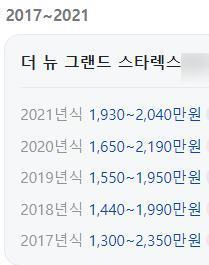 | 연식 | 최소 중고가격 (만원) | 최대 중고가격 (만원) |
