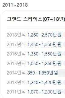 스타렉스 중고차의 연식별 가격은 아래와 같이 정리됩니다.